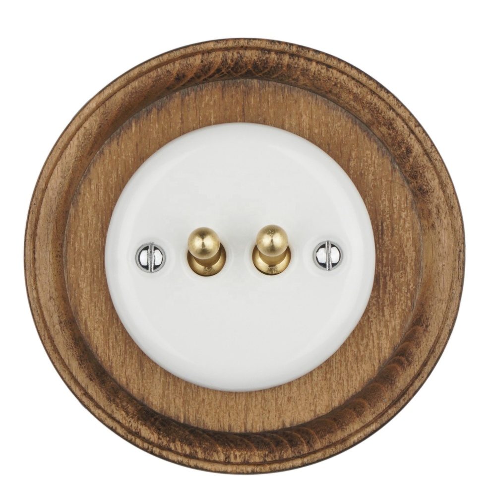 Fnd podwójny przycisk, biała porcelana, zaciski śrubowe, typ 2, 10A, 250V, IP20.