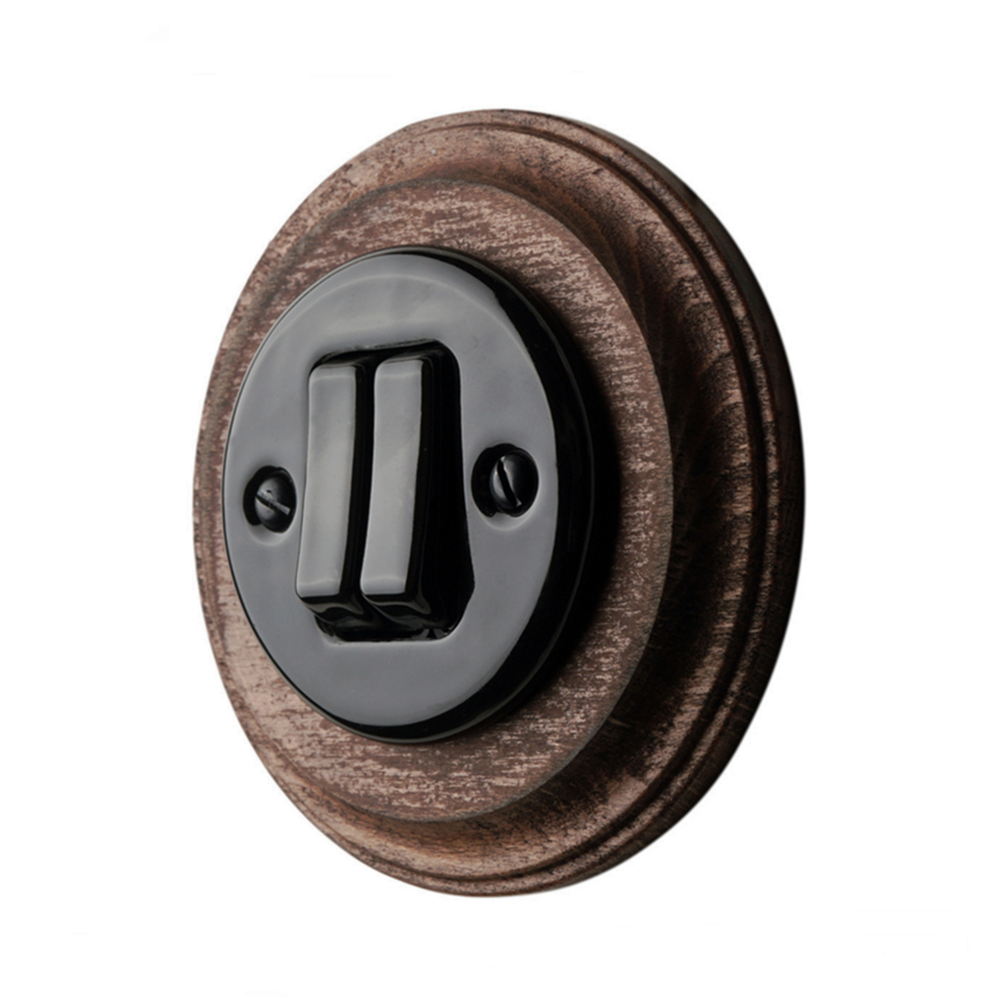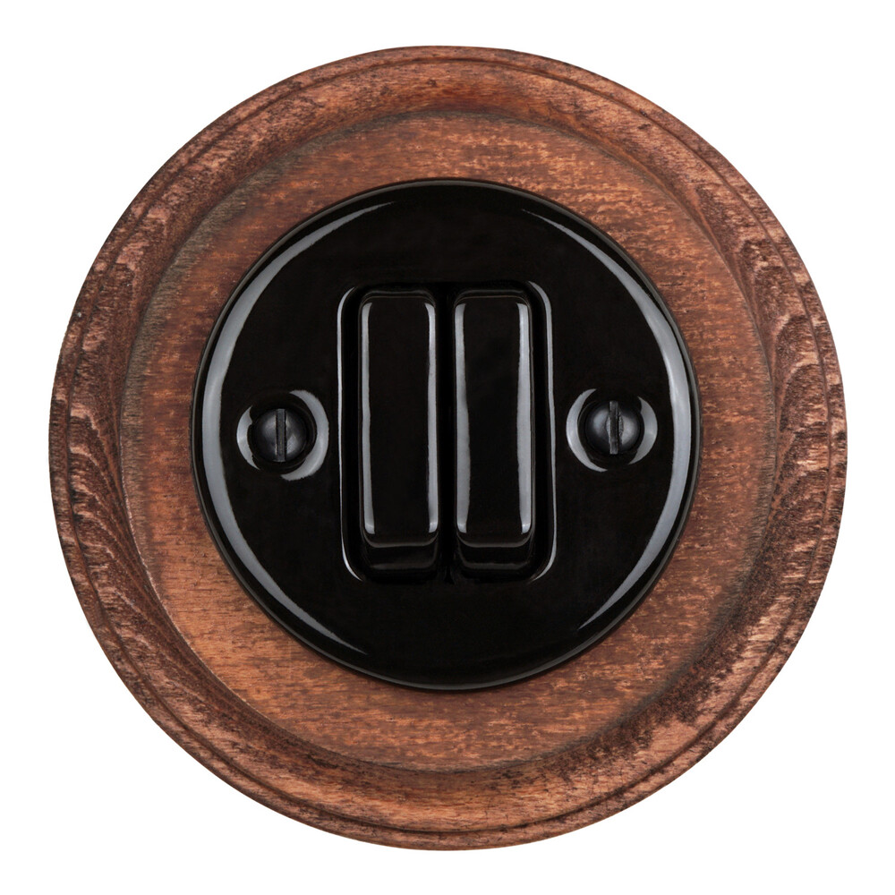 Fnd podwójny przycisk, czarna porcelana, zaciski śrubowe, 10A, 250V, IP20.